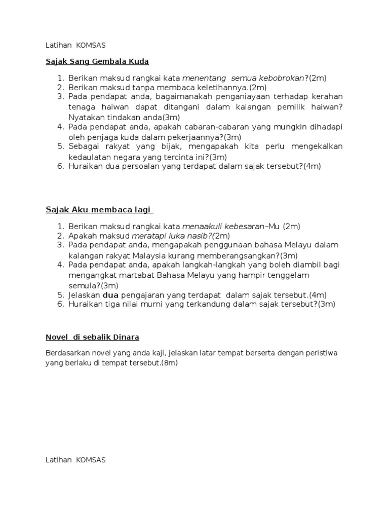 Modul Praktis Komsas Tingkatan 4 dan Jawapan 3 Karya. Menentang semua kebobrokan Penjaga kuda sang gembala kuda diibarat penguasa yang mempunyai kemampuan untuk mengawal seluruh pengikut. Sajak ini terdiri daripada empat rangkap.