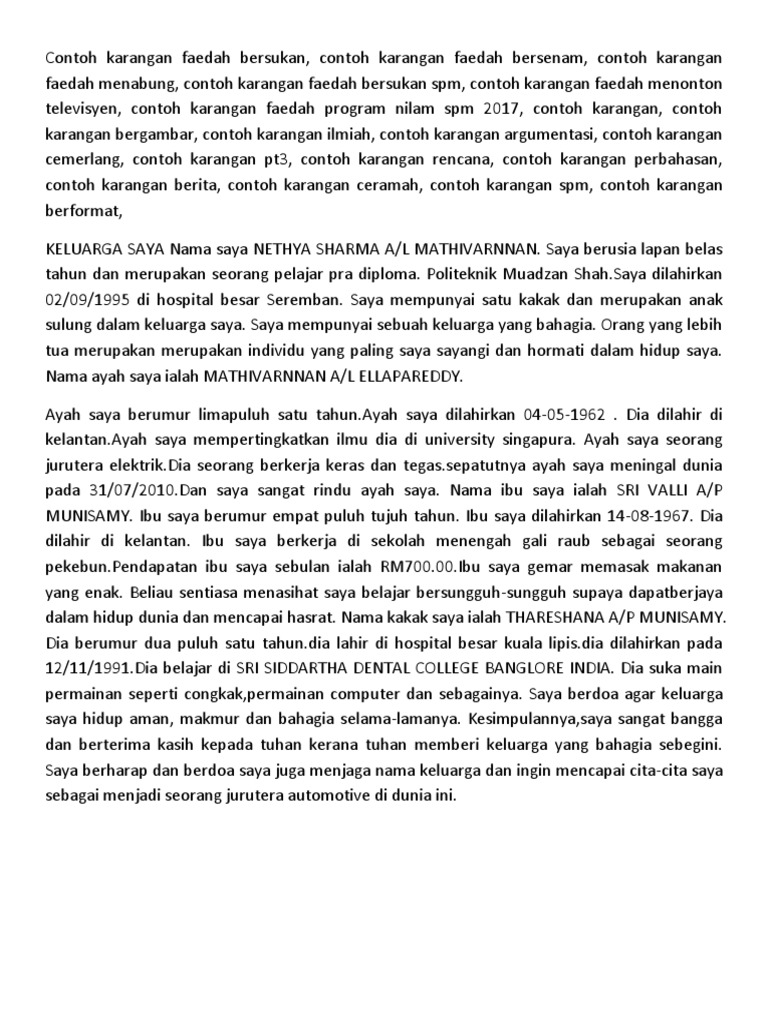 Ibu Saya Contoh Karangan Tahun 3 Zafrina Keluarga Saya Belajar Karangan